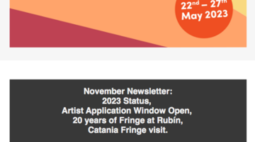 2023 Status, Artist Application Window Open, 20 years of Fringe at Rubín, Catania Fringe visit.